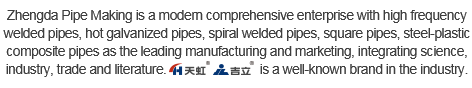Handan Zhengda Steel Pipe Co.,Ltd.("ZHENG DA PIPE" in Chinese for short,and "ZDP" in English for short) is one of the ten supported enterprise by Handan city goverbment, one of the top 100 enterprises in Hebei province,Leading Enterprise of Hebei Industrial Cluster,one of the top 500 manufacturers in China, one of the top 500 private enterprises in China,the national high and new tech enterprise,observe contracts.Dealing with ERW steel pipe,galvanized steel pipe,SSAW steel pipe,square steel pipe,steel-plastic composite pipe,angle iron,zhengda has become a modern comprehensive enterprise of technology research and trade.